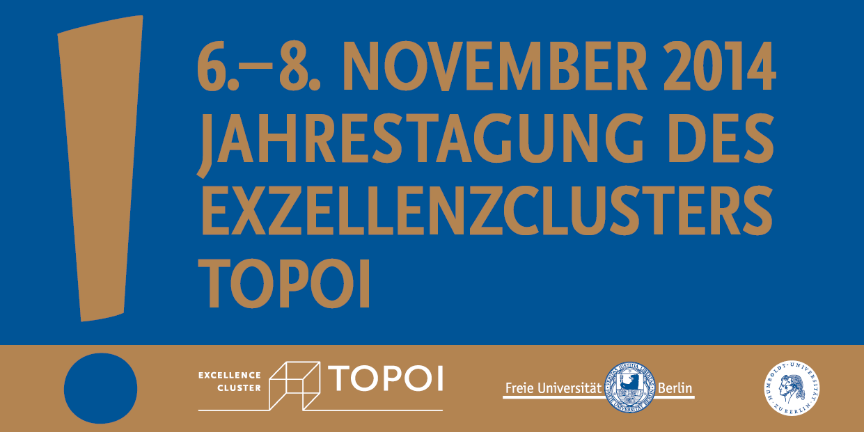 Die Jahrestagung 2014 des Exzellenzclusters Topoi berichtet über die aktuellen Arbeiten und erste Ergebnisse der Topoi-Forschergruppen in der zweiten Förderphase. Neben Einführungsvorträgen zu den Forschungs-Areas (A–D) werden die Gruppen konkrete Beispiele aus ihrer Arbeit vorstellen. Die neuen Formate “Key Topic” und “LAB” präsentieren sich mit diversen medialen Stationen und laden zum Gespräch.