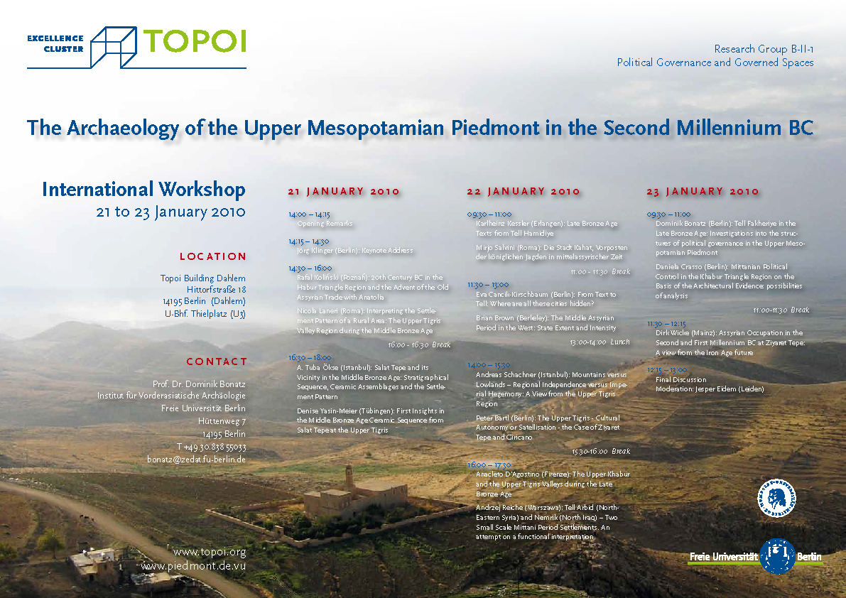 09:30 - 11:00 | Tell Fakheriye in the Late Bronze Age: Investigations into the structures of political governance in the Upper Mesopotamian Piedmont Dominik Bonatz |