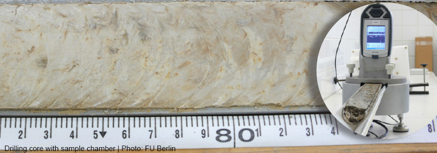 In 2014 the innovative sample chamber received an utility model protection from the German Patent and Trade Mark Office. The Development of the sample chamber by the FU employees, formulation of the utility model protection by a Berlin patent attorney firm, and the fees for the application to the German Patent and Trade Mark Office were financed by Topoi in the scope of the Forum Spatial Data Analysis and by the Patent and Licensing Service (PULS) of FU Berlin.