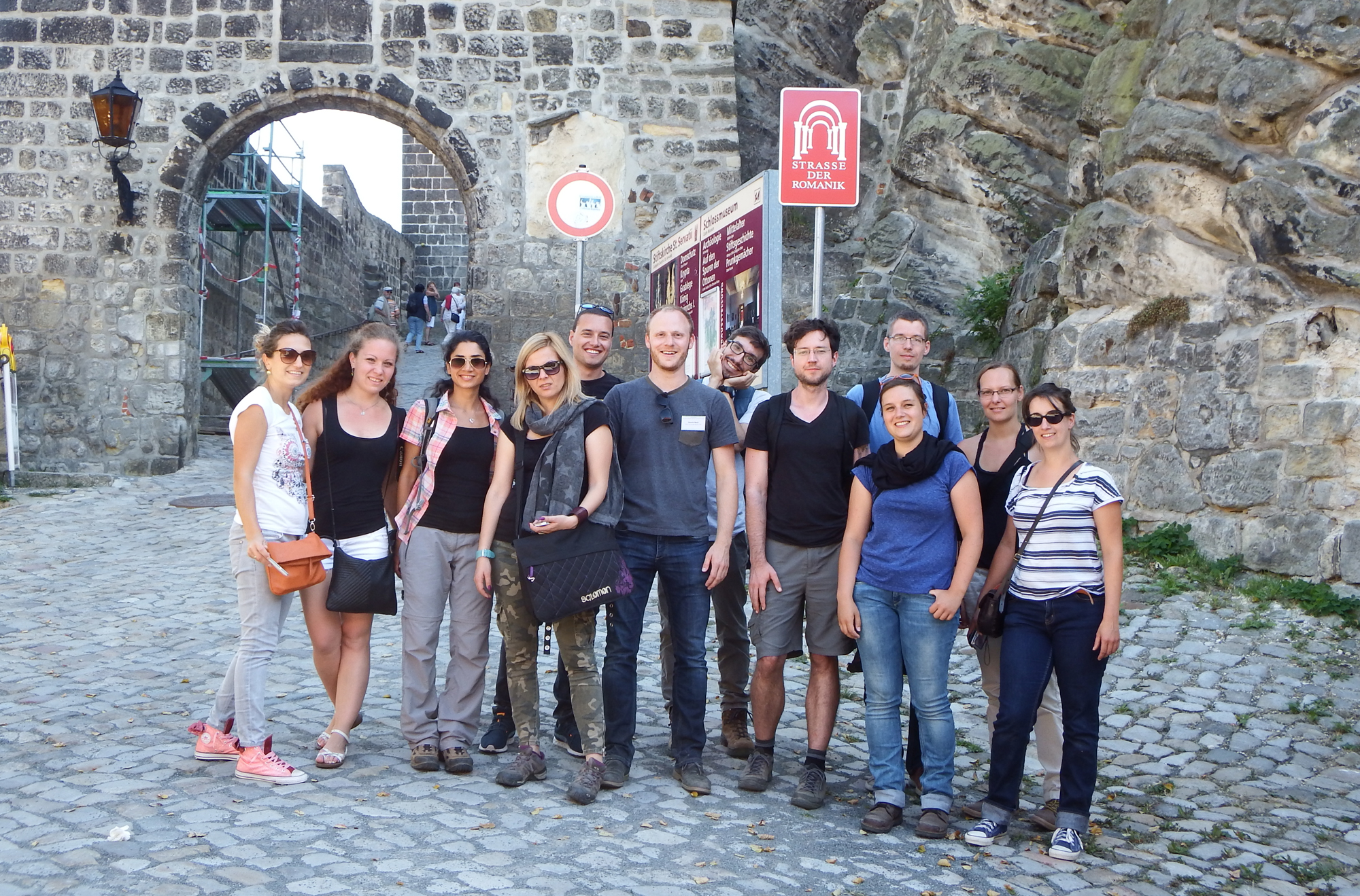 Nach einer Einführung in die Archäokeramologie bekamen die Teilnehmer im naturwissenschaftlichen Referat des Deutschen Archäologischen Instituts (DAI) Einblicke in die Archäozoologie, Archäobotanik, Anthropologie und Dendrochronologie und konnten im Labor selbst Hand an Knochen, Holzstücke und Vergleichsproben legen. Auch das Architekturreferat des DAI war an der Durchführung des Workshops beteiligt und eröffnete mit einem Rundgang durch das Topoi-Haus ganz neue Einsichten in dessen (Bau-)Geschichte. Der gemeinsam mit Undine Lieberwirth gestaltete Tag, der unter dem Motto “Surveying of Areas, Buildings and Objects in Bauforschung and Archaeology“ stand, beinhaltete neben Einführungsreferaten auch die praktische Anwendung von Structure-From-Motion im GIS-Labor. Nicht nur die Kombination von Theorie und Praxis stand im Mittelpunkt der Summer School sondern auch die gleichwertige Darstellung archäologischer und geographischer Methoden. So wurde die Exkursion nach Quedlinburg zur Ausgrabung des Instituts für Prähistorische Archäologie mit der Besichtigung der Teufelsmauer und Erläuterungen zur Landschaftsgenese des nördlichen Harzvorlandes verbunden. Die Woche fand ihren Abschluss während der Posterpräsentationen, bei denen die Anwendung der vorgestellten Methoden im eigenen Projekt lebhaft diskutiert wurde. Besonderen Anklang fand dabei die von Daniel Knitter gegebene Einführung zum Modellieren in der Landschaftsarchäologie, die die Grundsatzfrage aufwarf: “Why space matters” – eine Frage, der die Teilnehmer gerne in einer weiteren Summer School nachgehen möchten. Unser Dank gilt allen beteiligten Institutionen und Personen sowie der Einsteinstiftung für die großzügige finanzielle Förderung.