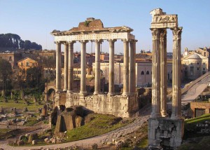 Past and Present in late antique Rome: Forum Romanum, Temple of Saturn as restored in Late Antiquity. Photo: Susanne Muth
