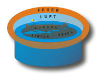 Exp03: Weltmodell nach Anaximander | Digitales Bild | Milet, 1. Hälfte 6. Jh. v. Chr., Rekonstruktionsversuch durch Klaus Geus und Michael Rathmann, zeichnerische Umsetzung durch Michael Herchenbach 2009. Mit freundlicher Genehmigung von Michael Herchenbach |