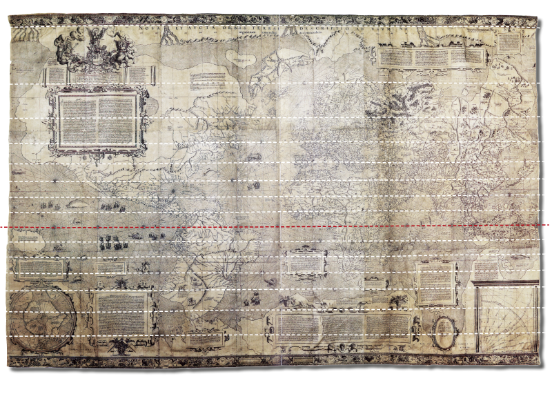 Exp07: Gerhard Mercator, ‚Nova et aucta orbis terrae descriptio ad usum navigantium emendate accomodate’ | Kupferstich, 198 x 121 cm (18 Blätter à 38 x 44 cm) | Duisburg, 1569 | Kenneth Nebenzahl: Der Kolumbusatlas, Braunschweig 1990, S. 128-129 | Link: http://www.wilhelmkruecken.de |