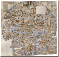 Das christliche Mittelalter schuf eigene, symbolisch hoch aufgeladene Weltbilder, die aus biblischen, historischen und geografischen Informationen gefügt sind – Mischformen der Heilsgeschichte mit der realen Welt, des Jenseits und des Diesseits. Einfache, abstrakte (schematische) Formen entwickeln sich zu kunstvollen und komplexen Bildern.