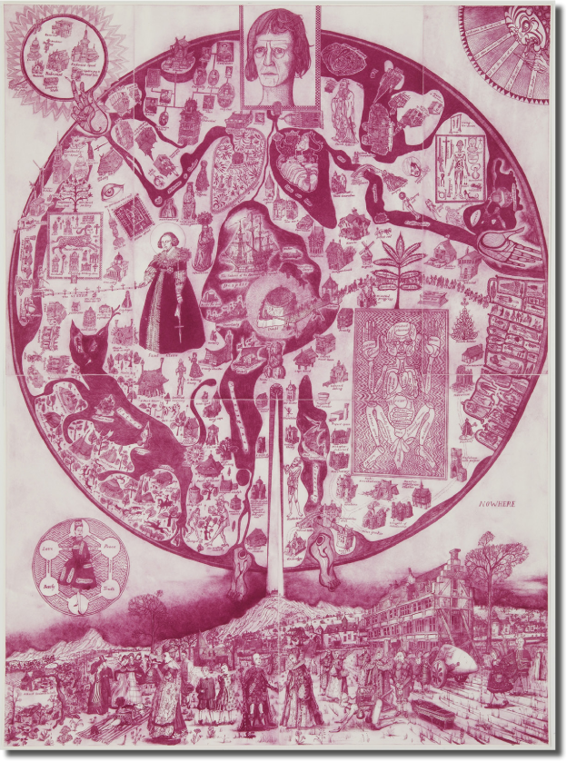 Exp11: Map of Nowhere – Purple Variant |Grayson Perry, Radierung, 152 x 113 cm | Galerie Maximillian, Aspen, USA, 2008 | Link: http://hammer.ucla.edu/newsblogs/?p=760 |