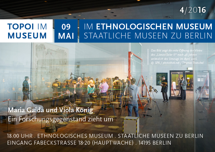 Die Veranstaltung ermöglicht einen einzigartigen Einblick in einen der größten Umzüge von Museums-Exponaten der letzten Jahrzehnte. Auch der berühmte Mesoamerika-Saal ist nur noch teilweise zugänglich, der großformatige Lienzo Seler II jedoch noch einsehbar. Anfang 2017 werden die Sammlungen des Ethnologischen Museums endgültig geschlossen. In die Neupräsentation im Humboldt Forum werden auch Ergebnisse des Topoi-Forschungsprojekts einfließen, das von Viola König geleitet wird.