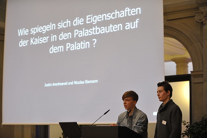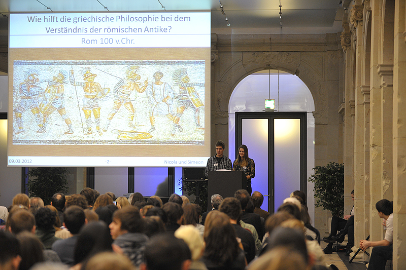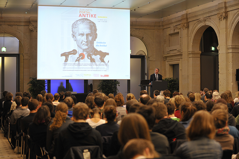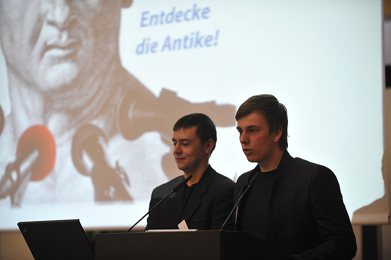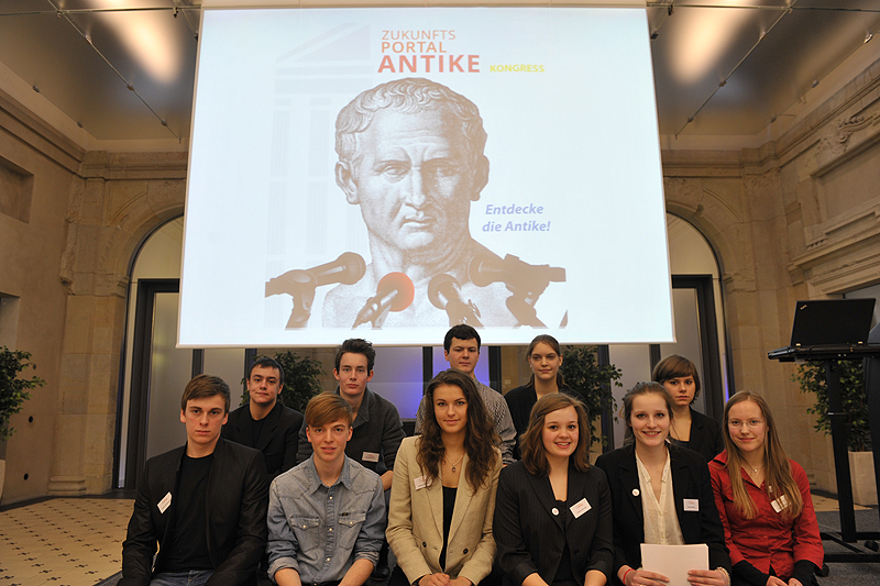 The student project “Zukunftsportal: ANTIKE” took place in front of 250 guests: About 100 students of different Berlin secondary schools came together at the Berlin-Brandenburg Academy of Sciences and Humanities. They discussed research issues relating ancient worlds. In January 2012 the students investigated various areas of work of researchers in Berlin. In different workshops they discovered authentic places such as the German Archaeological Institute (DAI) or the museums of the Prussian Cultural Heritage Foundation. There, renowned researcher gave an insight into some of their projects. Joining experts, the students also created lectures, flyers, PR, a documentary, and other publications. The students presented the results of their journey back in time, encountering topics such as “Who owns Antiquity?” or “What are the benefits of the reconstruction of ancient landscapes “. At the end of the project the students held a press conference together with other participants of their historic endeavour.