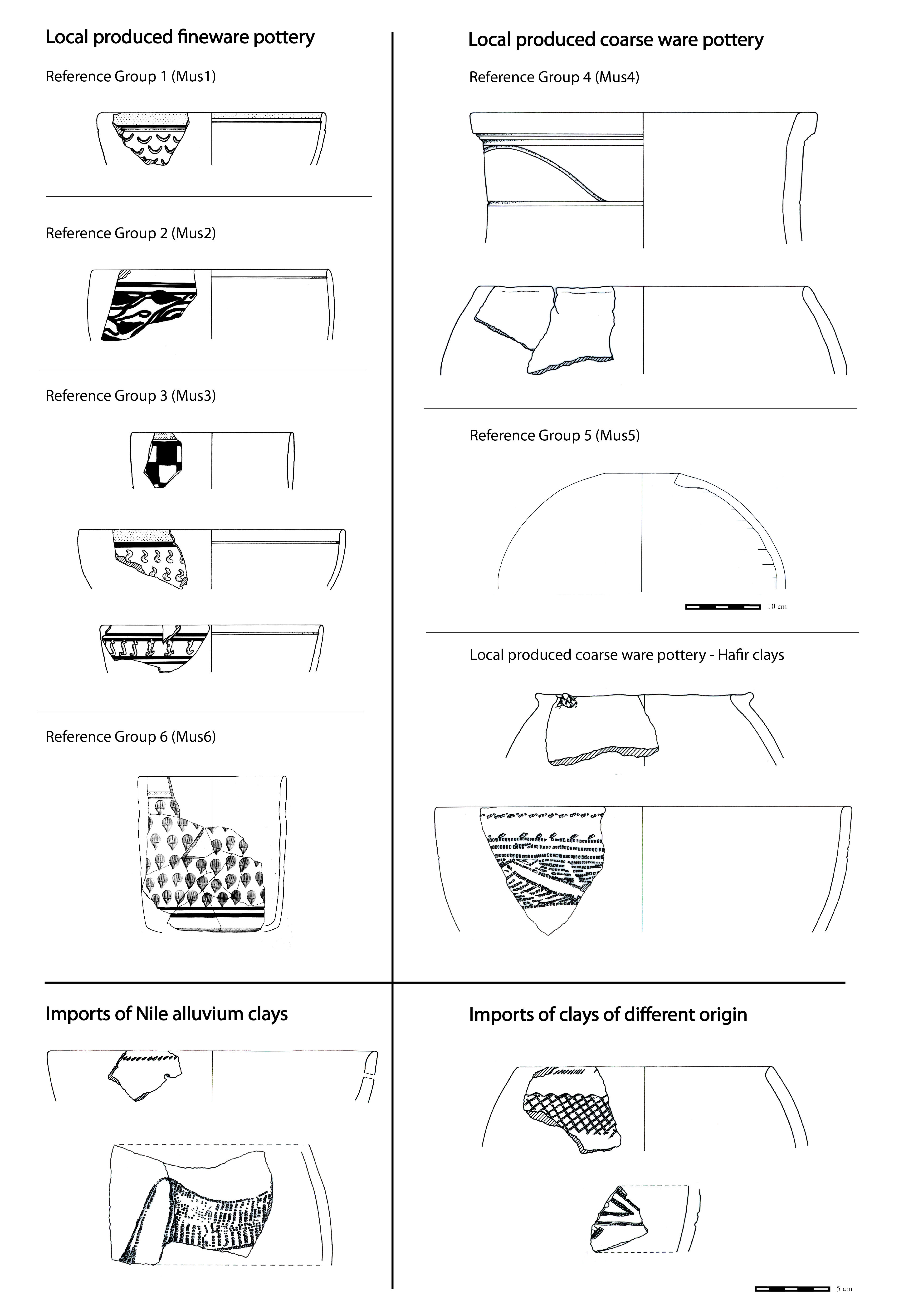 The study of the pottery was accompanied by extensive archaeometric analyses (MGR, WD-XRF, XRD, thin section, SEM) as well as technological analyses (determination of original firing temperatures using KH-analysis), and analyses of physical ceramic properties (apparent density, open porosity, water absorption) and functional properties (water permeability, thermal shock resistance; all undertaken by M. Daszkiewicz and G. Schneider, in cooperation with Warzaw University of Technology). They confirmed that almost all fine wares and most wheel-made coarse wares were made from ceramic bodies of similar chemical and mineralogical composition and can be associated with local production. The vessels were produced using different sources of clays (wadi clays, hafir clays) which were available in the vicinity of the site. In contrast, the handmade coarse wares (with the exception of two fabrics which are made from local raw materials) are produced from non-local raw materials and can be classified as imported to the site. Apart from this special group, only very few sherds are of non-local origin. Vice versa, comparison with data from other sites indicates that the pottery from Musawwarat was not regularly distributed. Thus it can be concluded that the workshop primarily produced for and met the needs of on-site consumption.