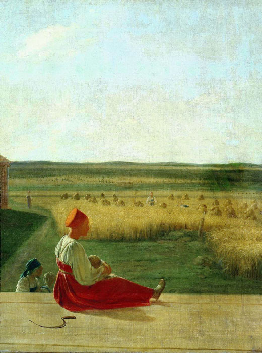 Aleksej Venecianov “Bei der Ernte. Sommer” ca. 1825. (The State Tretyakov Gallery. Jubilee Album to mark the 850th anniversary of Moscow, Moskva 1997)