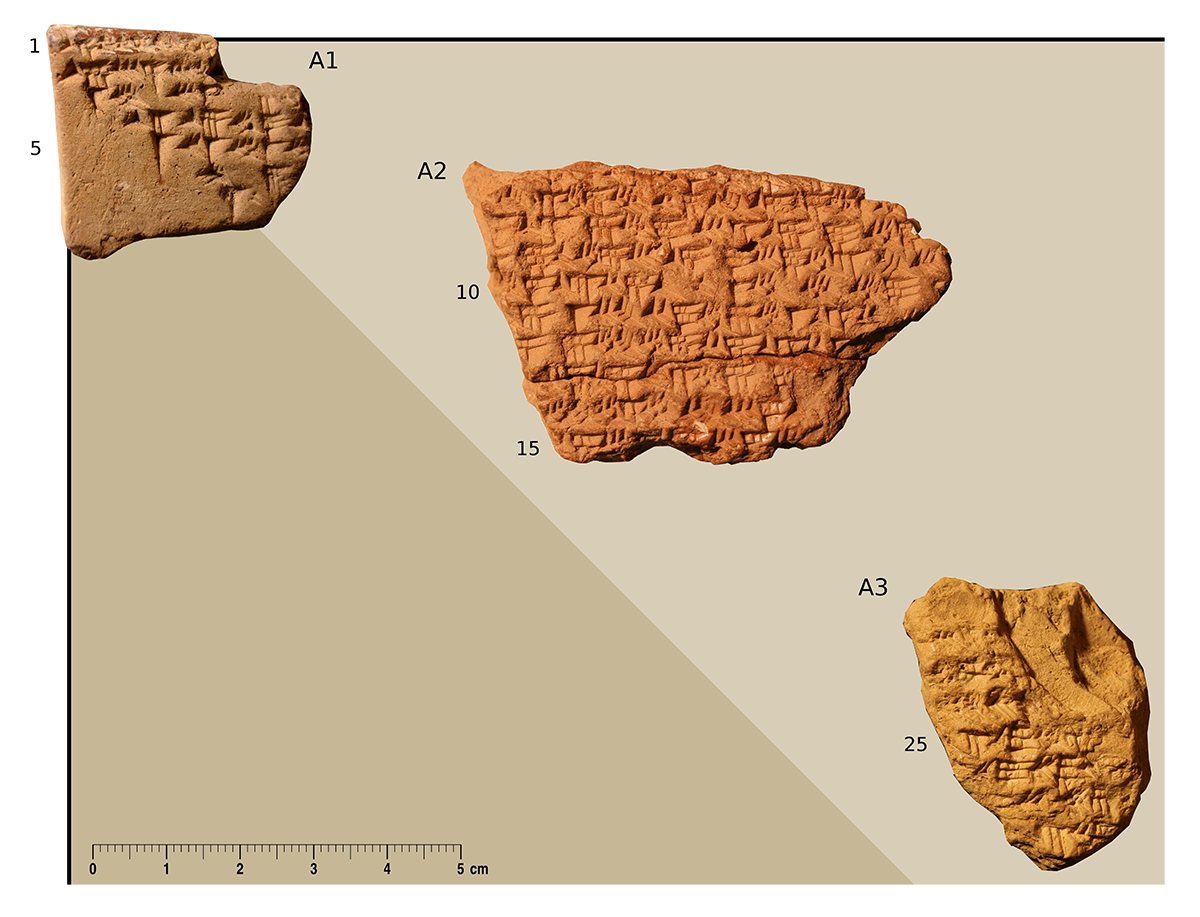 This tablet with descending powers of 9 in sexagesimal notation belongs to a newly discovered class of mathematical tables from the Late Babylonian period (Ossendrijver, 2014, Journal of Cuneiform Studies 66, 149-165). Photo: Trustees of the British Museum/Mathieu Ossendrijver.