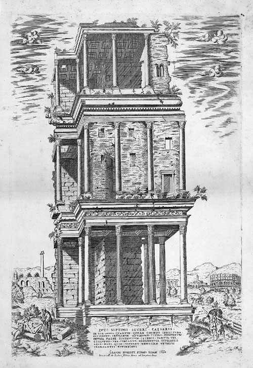 Septizonium des Septimius Severus, Kupferstich von 1582. Claudii Ducheti Formis Romae 1582