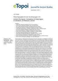 Jan Stenger, "Plenartagungsbericht der Forschergruppe C-IV: Ancient City Spaces. Conceptions of Urban Space in Literature, Architecture, and Art", in: Reports of the Research Groups at the Topoi Plenary Session 2010, eTopoi. Journal for Ancient Studies, Special Volume 1 (2011), 1–17