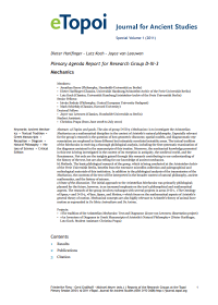 Dieter Harlfinger, Lutz Koch and Joyce Van Leeuwen, "Mechanics", in: Reports of the Research Groups at the Topoi Plenary Session 2010, eTopoi. Journal for Ancient Studies, Special Volume 1 (2011), 1–6