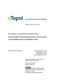 Brian Beckers, Jonas Berking and Brigitta Schütt, "Ancient water harvesting methods in the drylands of the Mediterranean and Western Asia", in: eTopoi. Journal for Ancient Studies, Volume 2 (2012/2013) (2013), 145–164