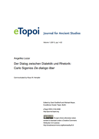 Since Antiquity dialogue was one of the paradigmatic genres in theoretical discourse and its cognitive function was of fundamental significance in Renaissance theory of dialogue. This importance was considered for the first time by Carlo Sigonio in his De dialogo liber. Referring to Aristotle’s Topica, Sigonio defined dialogue as a written imitation of a dialectical disputation. He considered the arguments in a dialogue as well as in a dialectical disputation not to be based on scientific propositions, which are necessarily true, but to be based on commonly accepted premises. In consequence thereof, dialogue is not intended to generate indubitable knowledge but to foster “opinions” (opinio), “beliefs” and “convictions” (fides), whose epistemological value is a matter of discussion. The intention of this paper is to present the arguments developed by Sigonio in order to explain that opinio and fides are not only legitimate epistemic goals, but sometimes the only reasonable ones. A further topic is the functions of dialectic and rhetoric within the framework of this cognitive concept.