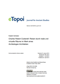 Katalin Schober, "Charles Robert Cockerell: Reisen durch reale und virtuelle Räume im Werk eines Archäologen-Architekten", in: eTopoi. Journal for Ancient Studies, Volume 2 (2012/2013) (2013), 25–42