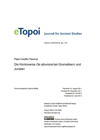 María Josefa Castillo Pascual, "Die Controversia de alluvione bei Gromatikern und Juristen", in: eTopoi. Journal for Ancient Studies, Volume 2 (2012/2013) (2013), 1–23
