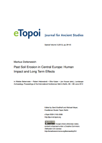 The aim of this paper is to review studies on past soil erosion in small catchments of central Europe and highlight the long-term feedback perspective of such erosion and sedimentation processes with regard to an ecosystem, including socio-economic and human impact. It is based on an earlier review paper by Dotterweich but includes more recent research obtained in the past 4 years. It concentrates on the reconstruction of the long-term soil erosion history, including rare extreme events, by analysing erosional sites and colluvial deposits on foot slopes, dry valleys, and fans in small 0-order catchments pedologically as well as sedimentologically. Alluvial deposits of small tributaries and lake sediments were also incorporated. Extreme events seem to be particularly important factors, playing a key role in the evolution of past human-environment systems. Such data sets are also essential to calibrate or enhance existing soil erosion models to obtain regional soil loss estimates, which are critical in creating more sustainable land use systems in changing climatic conditions, and with progressively mounting pressure to intensify land use.