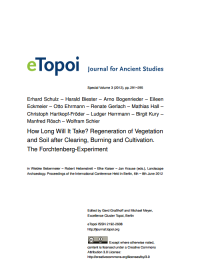 Erhard Schulz, Harald Biester, Arno Bogenrieder, Eileen Eckmeier, Otto Ehrmann, Renate Gerlach, Mathias Hall, Christoph Hartkopf-Fröder, Ludger Herrmann, Birgit Kury, Manfred Rösch and Wolfram Schier, "How Long Will It Take? Regeneration of Vegetation and Soil after Clearing, Burning and Cultivation. The Forchtenberg-Experiment", in: Landscape Archaeology Conference (LAC 2012), eTopoi. Journal for Ancient Studies, Special Volume 3 (2012), 291–295