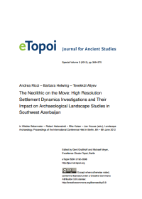 Andrea Ricci, Barbara Helwing and Tevekkül Aliyev, "The Neolithic on the Move. High Resolution Settlement Dynamics Investigations and Their Impact on Archaeological Landscape Studies in Southwest Azerbaijan", in: Landscape Archaeology Conference (LAC 2012), eTopoi. Journal for Ancient Studies, Special Volume 3 (2012), 369–375