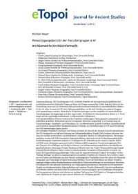 Michael Meyer, "Archäometrie/Archäoinformatik", in: Reports of the Research Groups at the Topoi Plenary Session 2010, eTopoi. Journal for Ancient Studies, Special Volume 1 (2011), 1–12