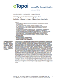 Colin Guthrie King, Cosima Möller and Manfred G. Schmidt, "Definition of Spaces by Means of Surveying and Limitation", in: Reports of the Research Groups at the Topoi Plenary Session 2010, eTopoi. Journal for Ancient Studies, Special Volume 1 (2011), 1–16