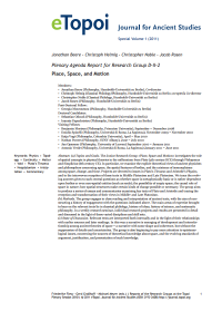 Jonathan Beere, Christoph Helmig, Christopher Noble and Jacob Rosen, "Place, Space, and Motion", in: Reports of the Research Groups at the Topoi Plenary Session 2010, eTopoi. Journal for Ancient Studies, Special Volume 1 (2011), 1–11