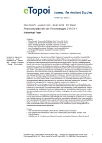 a) Topics and Objectives. Dialectical topoi constitute an essential component of Aristotelian logic and theory of argumentation (dialectics). These can be characterized as essential patterns of argumentation which allow us to found premises which are suited to the establishment of specific theses. Our research group concentrates on two themes: the first working focus consists of a precise investigation of the topos– based dialectical logic found in Aristotle. We are concerned in particular with the dialectical texts contained in the Organon (Topics, Rhetoric, Sophistical Refutations), and we are considering their relationship to the formal logic developed in the Prior Analytics. The second focus of our work is an investigation of the reception of Aristotelian dialectics in the Renaissance. Occurring in the 16th century was in intensive reception of the Aristotelian Topics, as suggested by numerous new translations and commentaries. We are concentrating on the relationship between veritas/scientia and opinio/probabilitas in the epistemology of the Renaissance. In particular, we are interested in the question of how the dialectics and rhetoric of the Renaissance were influenced by the form and genre of the dialogue, and in the role played in the Renaissance by the spatial dimension, which is contained both in Aristotle’s definition of the topos as the “place from which the attack comes”, as well as in Cicero’s definition of the locus as the “seat of the argument” (sedes argumentorum). b) Methods. Relevant passages from the texts of the Aristotelian Organon are analyzed and set into relationship with one another. Consulted in particular in interpreting these texts is the inventory of 20th century theories dealing with logic and argumentation; modern mereological and topological systems, for example, are used in reconstructing Aristotelian logic, albeit without overlooking the historical specificity of the problems that are bound up with these antique texts. c) State of the Discussion. The group has concluded that Aristotelian formal logic is dependent upon and was shaped in various ways by topos-based dialectical logic. Aristotelian predication theory, for example, plays a decisive role for various aspects of the Aristotelian syllogistic which is contained in the Prior Analytics. Beyond this, the group has demonstrated that interpretations of the Aristotelian Topics made an essential contribution to the emergence of a relativistic epistemology in the Renaissance. The status of opinio/probabilitas in the Renaissance, for example, was influenced by interpretations of the Aristotelian concept of endoxon.