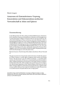 This paper reconstructs two old, previously undiscovered versions of myths that represent the “barbaric” Amazons in a positive light as immigrants, female ancestors and founding heroines. The paper focuses on the tale of Theseus and Antiope – an especially popular narrative at the end of the 6th c. BC that can be connected with very old cult monuments in Athens. In Ephesos findings from recent excavations in the Temple of Artemis coming from the Early Archaic Period (7th century BC) may likewise have provided reasons for the emergence of an older foundation legend there as well.