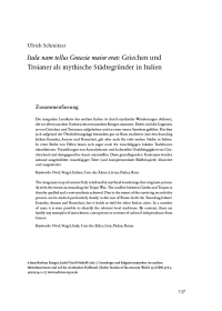 The imaginary map of ancient Italy is defined by mythical wanderings that originate primarily with the events surrounding the Trojan War. The conflict between Greeks and Trojans is thereby quelled and a new synthesis achieved. Due to the extent of the surviving records this process can be studied particularly closely in the case of Rome (with the “founding fathers” Euander, Aeneas and Romulus), but it holds as well for other Italian cities. In a number of cases it is even possible to identify the relevant local traditions. By contrast, there are hardly any examples of autochtonic conceptions or notions of cultural independence from Greece.