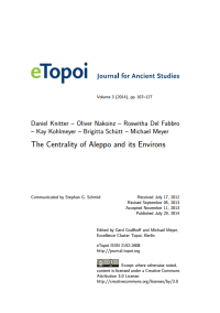 Daniel Knitter, Oliver Nakoinz, Roswitha Del Fabbro, Kay Kohlmeyer, Brigitta Schütt and Michael Meyer, "The Centrality of Aleppo and its Environs", in: eTopoi. Journal for Ancient Studies, Volume 3 (2014), 107–127