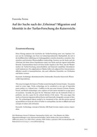 This essay investigates the history of Turfan research during the German Empire. Two points stand on center stage: Firstly, archaeology can be considered as one type of imperialist power politics in a cultural sense. Conflicts on the spot arose between German, Russian, French, and British archaeologist, since explorers of each nation intended to occupy spaces of excavation. Secondly, the quest for the ‘Urheimat’, which was the leitmotif of these expeditions, was also a quest for the cultural identity of the nation. This essay argues that myths on historical migration defined diverse and historically changeable concepts of identity. The archaeological objects needed to be interpreted at first, and this process opened up possibilities to locate the relicts of Turfan in cosmopolitan, but also in völkisch and racial concepts of culture and civilization.
