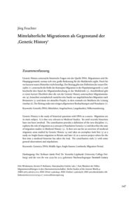 Genetic History is the study of historical questions with DNA as a source. Migrations are its main subject. It is thus very relevant to Medieval Studies. Yet until recently historians have not been involved. The contribution provides a definition of the new discipline (1), explores the role of migration as a concept in Population Genetics (2) and describes the state of migration studies in Medieval History (3). It then sets out for an overview of medieval migratory areas studied by Genetic History (4) and takes an exemplary look first (5) at a study on Anglo-Saxon migration to Britain and later (6) at a current project where for the first time a medieval historian has taken the lead. The contribution ends (7) with some general observations and stipulations.