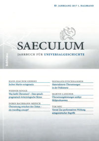 21–43 | Doris Bachmann-Medick, "Übersetzung zwischen den Zeiten – ein travelling concept?", in: Saeculum. Jahrbuch für Universalgeschichte, 67 (Aug 2017), 21–43 |