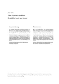 Klaus Frank, "Frühe Germanen am Rhein / Wcześni Germanie nad Renem", in: Michael Meyer, Piotr Łuczkiewicz and Björn Rauchfuß (Eds.), Eisenzeitliche Siedlungskeramik der Przeworsk-Kultur / Ceramika osadowa kulturyprzeworskiej z młodszego okresuprzedrzymskiego, Berlin: Edition Topoi, 2017, 99–121