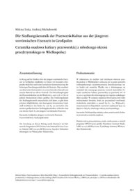 In Bezug auf die Studien über die jüngere vorrömische Eisenzeit in Großpolen empfinden wir heute ein besonders dringendes Bedürfnis nach einer komplexen Systematisierung desbisherigen Forschungsstands über die Keramik. Dies resultiert aus dem in den letzten Jahren zu verzeichnenden Zuwachs von neuem Material aus dieser Zeitstufe. Der Besiedlungsbeginn der Przeworsk-Kultur um die Wende des 3. zum 2. Jh. v. Chr. Ist jedoch überraschend schwer greifbar. Das Formenspektrum der Siedlungskeramik unterscheidet sich kaum, es gibt keine präzisen Möglichkeiten, den homogenen keramischen Fundstoff im Rahmen der Stufen A1 und A2 zu unterteilen. Die meisten großpolnischen Siedlungsfundstellen verbindet man erst mit der Stufe A3 der jüngeren vorrömischen Eisenzeit.