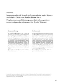 Die Grabungen in Wrocław-Widawa, Fdst. 17, haben sehr interessantes und umfangreiches keramisches Material geliefert, das in die jüngere vorrömische Eisenzeit (Stufen A1–A3)datiert. Die sog. Küchenkeramik besteht hauptsächlich aus Töpfen und Vorratsgefäßen, deren Oberfläche rau oder geraut ist. Manchmal kommt auch die Schlickrauung vor. Die sog. Tischkeramik vertreten sorgfältig ausgeführte, häufig geglättete Schüsseln, Schalen und Töpfe. Gemeinsam für alle Funktionsgruppen ist das Vorkommen von X-Henkeln und die Facettierung der Gefäßmündungen. Der Fundstoff zeigt zwar keine nennenswerten Unterschiede zu Materialien der Przeworsk-Kultur aus Schlesien, Masowien und Großpolen, spürbar sind aber auch Einflüsse der Latène- und der Jastorf-Kultur.