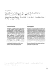 Die Fundstelle 3 in Lipianki liegt im Tal der unteren Weichsel in der Nähe von Kwidzyn. Während der großflächigen Rettungsgrabung im Jahr 2010 wurden insgesamt 1127 Gräber und Siedlungsbefunde von der jüngeren vorrömischen Eisen bis zur Völkerwanderungszeit registriert. Die Untersuchung der zahlreichen Gefäßscherben zeigt eindeutig, dass die Siedlung in der Stufe A2 der jüngeren vorrömischen Eisenzeit entstand. Bemerkenswert ist die Anwesenheit von keramischen Formen, die in der Przeworsk-Kultur beheimatet sind, was auf enge Verbindungen des Unterweichselgebietes zu dieser benachbarten Kulturzone verweist. Festzustellen ist dabei die Fortsetzung der ‚Oksywie‘-Stilistik bei der Keramik, die in die Übergangszeit zwischen der jüngeren vorrömischen Eisenzeit und der Römischen Kaiserzeit (A3/B1) datiert sowie bei einigen Gefäßen der Wielbark-Kultur.