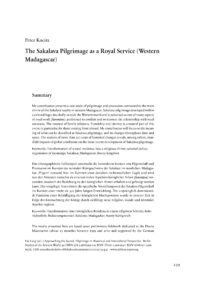 My contribution presents a case study of pilgrimage and procession connected to the main shrine of the Sakalava royalty in western Madagascar. Sakalava pilgrimage developed within a cultural logic decidedly outside the Western world and is perceived as one of many aspects of royal work (fanompoa), performed to confirm and to reassure the relationship with royal ancestors. The renewal of family relations, friendship and identity is a natural part of this event, in particular, for those coming from abroad. My contribution will focus on the meaning of what can be described as Sakalava pilgrimage, and its changes throughout time and space. The analysis of more than 300 years of historical changes reveals, among others, manifold impacts of global conditions on the more recent development of Sakalava pilgrimage.