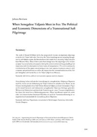 Johara Berriane, "When Senegalese Tidjanis Meet in Fez: The Political and Economic Dimensions of a Transnational Sufi Pilgrimage", in: Ute Luig (Ed.), Approaching the Sacred. Pilgrimage in historical and intercultural perspective, Berlin: Edition Topoi, 2018, 299–321