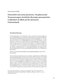 Anne Eusterschulte, "Glorienleib und anima phantastica. Neuplatonische Voraussetzungen christlicher Konzepte pneumatischer Leiblichkeit im Blick auf die lateinische Frühscholastik", in: Verena Olejniczak Lobsien, Bernd Roling, Lutz Bergemann and Bettina Bohle (Eds.), Vom Seelengefährt zum Glorienleib. Formen aitherischer Leiblichkeit, Berlin: Edition Topoi, 2018, 59–103