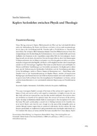 This essay investigates Kepler’s concept of harmony of the spheres with regard to the relation of body and soul as well as with regard to resurrection. In Kepler, it is not the case that body and soul are separated in a way that they needed mediation. Nevertheless, there are similarities to theories of the spiritual body: the concept of harmony of the spheres, Kepler develops in Harmonices Mundi, finds its counterpart in the description of the soul’s harmony. The soul’s activity plays a crucial role in finding harmony in the imperfect material world. Kepler asks how the soul, though it is the spot of the intangible, picks up entities through sensory organs that are connected with matter. In this context, the essay focusses particularly on mathematical and geometrical terms that Kepler understands as a link between the objects of senses and the harmony detached from these objects. Kepler intensively discusses Plato’s and Proclus’ teachings of the soul. For him, this also involves improvement of the heathen teaching of the soul and a compromise with Christian concepts, whereupon he reads Plato’s Timaios as a comment on the First Book of Moses. The discussion of Kepler’s theses shows which philosophical conditions and constellations the concept of ochema requires in order to play a prominent role as space or respectively place of metaphysical transactions. In this regard, the discussion also highlights the constellations in which the concept of ochema has to be modified due to systematically motivated restrictions and transformations.
