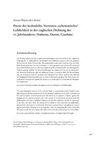 The essay highlights versions of the spiritual body in seventeenth-century English metaphysical poetry. In discussing poems on the prenatal condition of the soul, its postmortal life, and its bodily communication with the divine in the present, it shows, against the background of classical positions and in the context of contemporary discourse, how the philosophical concept is unfolded, refigured and thereby rendered a subject of experience in the here and now. Since the notion of the ochema is itself structured metaphorically, placing body and soul in a relationship of mutual correspondence, metaphysical conceits appear particularly adequate to its presentation. Thus, by imagining the soul as body and the body as soul, the texts expose and reflect the inherently poetic structure of the ochema.