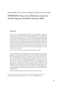Since 2012, the Centre Camille Jullian team carries out an interdisciplinary study of the aqueduct Galermi, architectural work and hydraulic engineering of about 30 km long. This aqueduct, built between the 5th century BC and the Roman Empire, first supplied drinking water to Greek and/or Roman Syracuse. In the 16th–17th centuries, partial transformations have been done and changed the function of the channel, with the installation of flour mills. In the 19th century, the new Italian state gradually expropriated immediate neighbors who exploited abusively the aqueduct. It was then devoted only to irrigate the Syracusan territory according to a system of concessions that has almost remained unchanged since the 19th century. The paper will present this program and the last results that the team obtained in the last two years, particularly about intakes of water and underground galleries, and which chronology can be proposed.