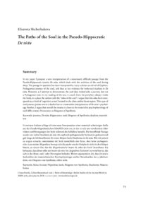 In my paper I propose a new interpretation of a notoriously difficult passage from the Pseudo-Hippocratic treatise De victu, which deals with the activities of the soul during sleep. The passage in question has been interpreted by many scholars as a kind of Orphico-Pythagorean journey of the soul, and thus as key evidence for body-soul dualism in De victu. However, as I attempt to demonstrate, the soul does indeed take a journey, but not a Pythagorean one: in my reading of the text, it travels from the periphery deeper inside the body, to a place the author calls the “oikos of the soul”. I argue that this oikos best correspondsto a kind of ‘cognitive center’, located in the chest and/or heart-region. This type of soul-journey points not to a dualist but to a materialist interpretation of De victu’s psychology. Further, I argue that overall the treatise is closer to the materialist psychophysiology of such fifth century Presocratics as Diogenes of Apollonia.