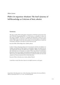 Albert Joosse, "Philo’s De migratione Abrahami: The Soul’s Journey of Self-Knowledge as Criticism of Stoic oikeiôsis", in: Chiara Ferella and Cilliers Breytenbach (Eds.), Paths of Knowledge. Interconnection(s) between Knowledge and Journey in the Greco-Roman World, Berlin: Edition Topoi, 2018, 111–136