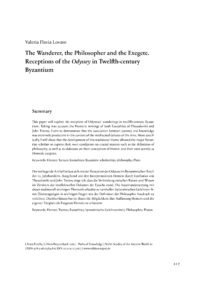 Valeria Flavia Lovato, "The Wanderer, the Philosopher and the Exegete. Receptions of the Odyssey in Twelfth-century Byzantium", in: Chiara Ferella and Cilliers Breytenbach (Eds.), Paths of Knowledge. Interconnection(s) between Knowledge and Journey in the Greco-Roman World, Berlin: Edition Topoi, 2018, 217–240
