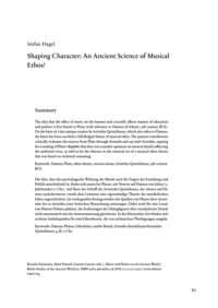 Stefan Hagel, "Shaping Character: An Ancient Science of Musical Ethos?", in: Ricardo Eichmann, Mark Howell and Graeme Lawson (Eds.), Music and Politics in the Ancient World. Exploring Identity, Agency, Stability and Change through the Records of Music Archaeology, Berlin: Edition Topoi, 2019, 87–103