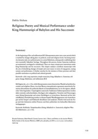 At the beginning of the 2nd millennium BCE Mesopotamia enters into a new period which is marked by changes taking place on political, social and religious levels. Incoming Amurrite dynasties take over political power in central Babylonia, subsequently establishing their own essentially ‘Akkadian’ heritage. Throughout this process, former Sumerian traditions are maintained, overlapped or abandoned. There are many conspicuous innovations under King Hammurāpi and his successors. This chapter analyzes cuneiform manuscripts with the aim of identifying changes of temple and court music in terms of song genres, tuning systems and performance. It further searches for the initiators of these processes and their possible motivation on political and cultural grounds.